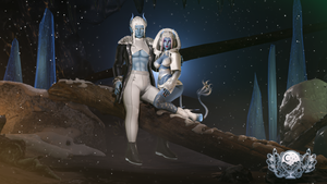 Entire outfit made from scratch by me Ressonae; Hair, horns, ear muffs, over the shoulder shaw, sheer sleeves, gloves, bodysuit, corset, skirt, stockings, fuzzy heels and tails including ALL accessories; piercings, jewelry etc. Every item is personalized and textured by ME through substance painter! NONE of these are for redistribution in any way. Please do not take these assets or any of the credited assets above that I have edited..